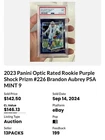This 2023 Panini Donruss Optic Rated Rookie Purple Shock Prizm #226 Brandon Aubrey PSA 10 is a must-have for any football fan. With its stunning design and high-quality printing, this sports trading card is a true collector's item. Featuring a parallel/variety of purple shock prizm, this card is sure to stand out in any collection. The card is from the National Football League (NFL) and features Brandon Aubrey, a up-and-coming player. It is part of the base set and is a rookie card, making it even more valuable to collectors. This card is perfect for anyone who loves collecting sports trading cards and want to add a high-quality, rare item to their collection.