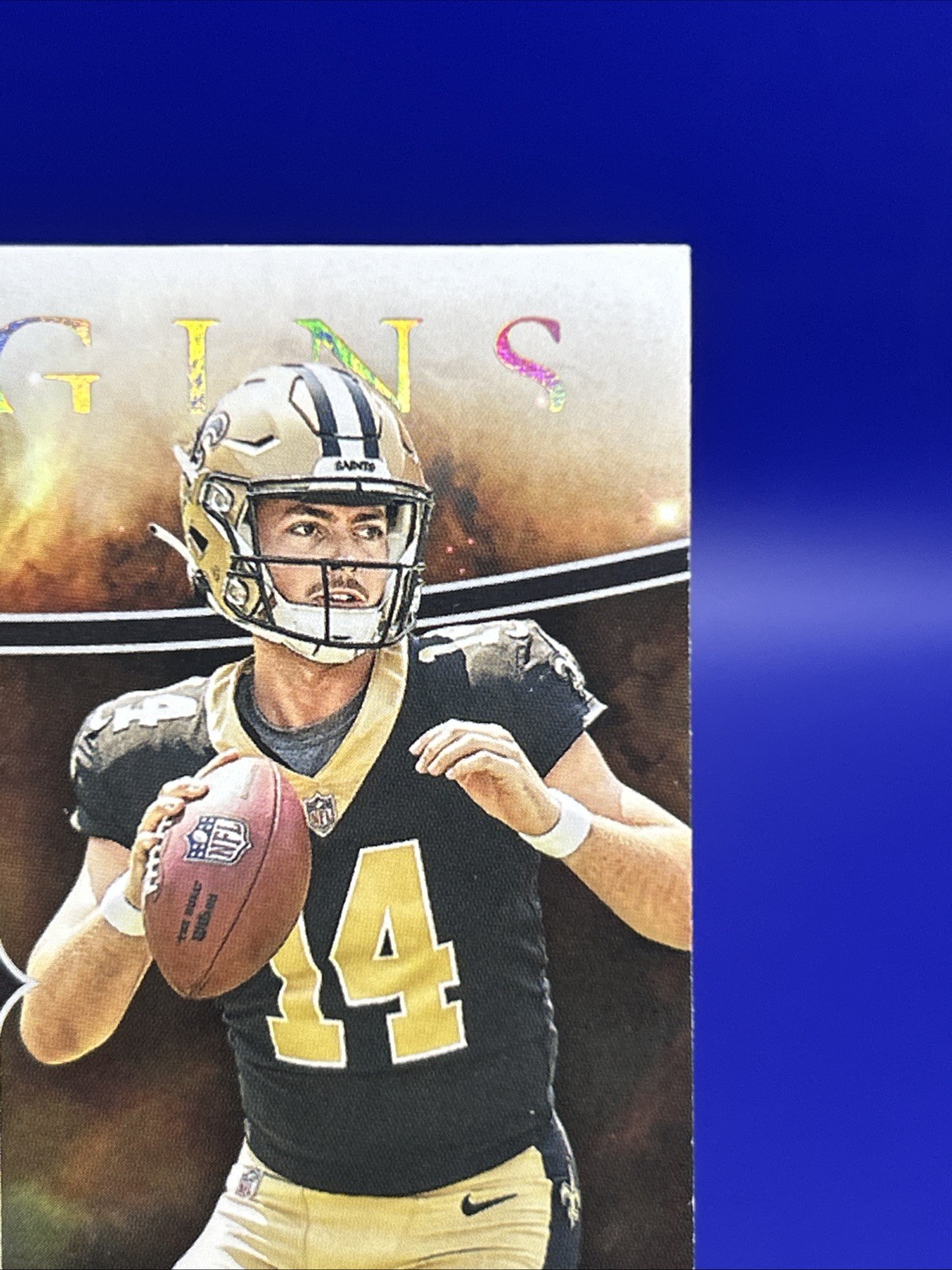 This 2023 Panini Origins trading card features Jake Haener, the rookie quarterback of the New Orleans Saints. The card is made of high-quality card stock with a thickness of 130 Pt. and has a patch parallel/variety with an autograph label or sticker. The autograph has been authenticated by Panini Authentic and the card is an original, not a licensed reprint. In addition to the autograph, the card also includes a jumbo jersey swatch and is part of the insert set. The card is in standard size and manufactured in the United States by Panini. This card is a must-have for any NFL fan and collector, especially those who are fans of the New Orleans Saints or Jake Haener.