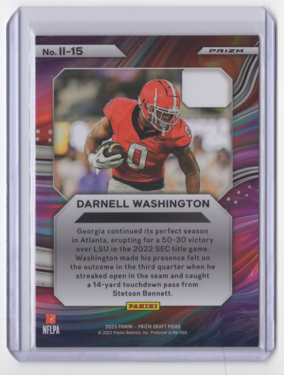 About Me Other Listings Feedback Add to Favorites Contact Me Striking Cards 901 2023 Panini Prizm Draft Picks Instant Impact Red Ice Darnell Washington Georgia No stock photo / These are real scans or pictures Details Description: Darnell Washington Category: Football Year: 2023 Product: Panini Prizm Draft Picks Instant Impact Red Ice Team: Georgia Bulldogs Card Number: II-15 Dimensions: 4" x 3" SKU: FT B0001 R01 B (824) Shipping If combined shipping is requested, we will send an invoice with the combined shipping charges as soon as possible. Please keep in mind that, in order to keep shipping costs down, we may need to put two cards into the same top-loader. Also, keep in mind that the tracking on eBay Standard Shipping (plain white envelope) is not very dependable. If you would like upgraded shipping to Ground Advantage, which gives more accurate tracking, just ask and we'll send you an invoice with those amounts! Listing By Kronocard trading cards software v2.6.5.5