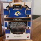 This 2023 Panini Select Concourse Tri-Color Prizm trading card features Puka Nacua of the Los Angeles Rams. The card is numbered 56 out of 259 and is part of the base set. It also includes features such as being serial numbered and a rookie card for Nacua's debut season. The card is in excellent shape, with no noticeable flaws or defects. It is a great addition to any sports trading card collection, especially for fans of the National Football League and Puka Nacua. Don't miss out on the opportunity to add this card to your collection! card is as pictured.