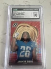 This 2023 Panini Zenith trading card features Jahmyr Gibbs in the Zeal of Approval Red design. The card has been professionally graded by the Certified Guaranty Company (CGC) and received a perfect grade of 10. It is a great addition to any sports trading card collection and is sure to impress. The card falls under the categories of Trading Card Singles and Sports Mem, Cards & Fan Shop. Add it to your collection today and enjoy the approval of your fellow sports enthusiasts.