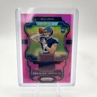 The 2023 Prizm #PJ-WL Will Levis Premier Jersey Pink Holographic trading card features a patch from Will Levis' jersey, representing his time with the Tennessee Titans in the 2023 season. Manufactured by Panini, this sports trading card is a valuable addition for football fans and collectors. The pink holographic design adds a unique and eye-catching element to the card, making it a sought-after item in the Sports Trading Cards category.