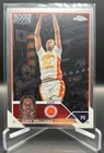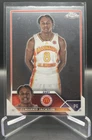 This 2023 Topps Chrome trading card is a must-have for any basketball fan. With the opportunity to choose your own card from the base set, inserts, and parallels, you can create a unique collection that represents your favorite team and players. The card is made of high-quality card stock and features a chrome finish, making it a durable and stylish addition to your collection. The card is an original licensed product from Topps and is part of the National Collegiate Athletic Association (NCAA) league. It is a standard size trading card and is not autographed. The card is perfect for anyone who loves collecting sports trading cards and wants to add a unique piece to their collection. How it Ships: Inside a penny sleeve and top loader sealed with painter's tape and surrounded by cardboard.