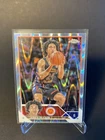 Elevate your basketball card collection with the 2023 Topps Chrome McDonald's All-American Jared McCain Ray Wave Refractor card. Featuring the rising star in a dynamic design, this card is a standout with its RayWave refractor finish, showcasing the shine and swirl that collectors and fans alike adore. As part of the esteemed 2023 Topps Chrome McDonald's All-American set, card number 76 captures the essence of the sport and the athlete. Proudly display this piece of memorabilia featuring Jared McCain, a player who represents the fusion of talent and potential, and add a touch of brilliance to your collection with this sparkling refractor card.