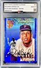 This 2023 Topps Chrome Platinum trading card features baseball legend Orlando Cepeda of the San Francisco Giants. The card is a parallel variety, with a unique Blue Mini Diamond design and only 199 cards in existence. It is also serial numbered for added authenticity. This card is a must-have for any serious collector of sports trading cards. The BLS 9.5 GEM rating ensures that this card will be a valuable addition to any collection. Don't miss your chance to own this rare and highly sought-after card.