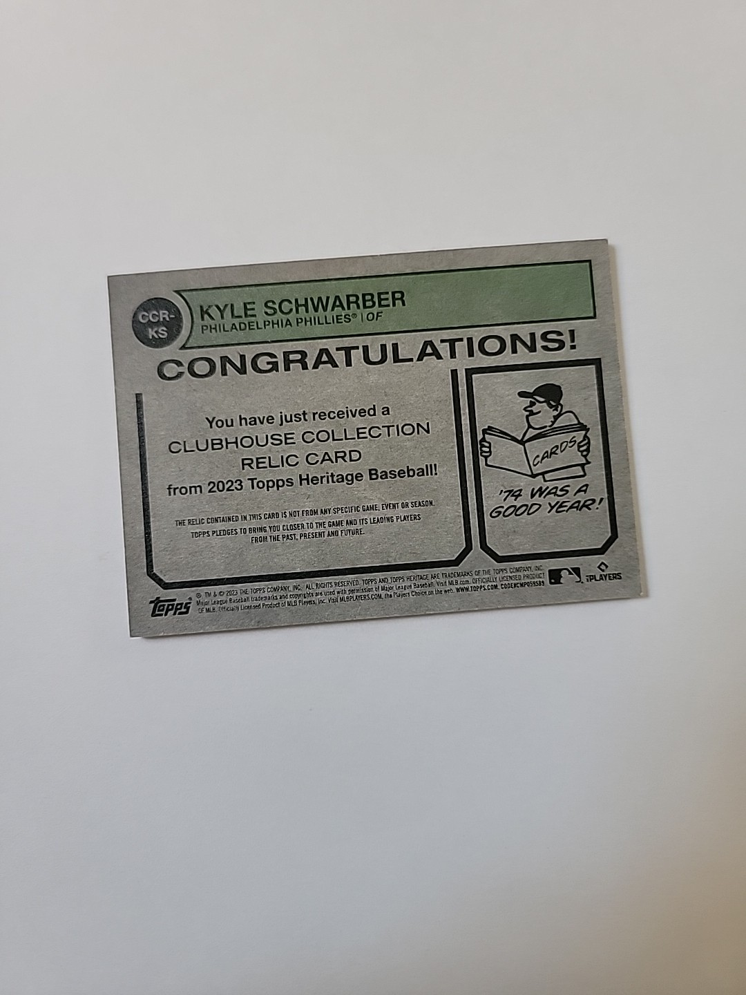 This card is a must-have for any Phillies or Schwarber fan! The design is clean, the relic piece adds a cool collectible touch, and the quality is top-notch. It looks amazing in my display case and was packed securely. Definitely worth adding to your collection!