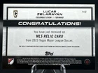 Own a piece of soccer history with this 2023 Topps MLS Player Worn Relic trading card featuring Lucas Zelarayan of the Columbus Crew SC. This original card made of high-quality card stock showcases a relic worn by the player during a match, making it a must-have for any Major League Soccer fan or collector. The card is part of the 2023 Topps MLS set and is a standard size trading card with English language text. It is not autographed but features memorabilia from the player. The card number is R-LZ and it is a parallel/variety relic card. Don't miss your chance to add this unique and valuable card to your collection.