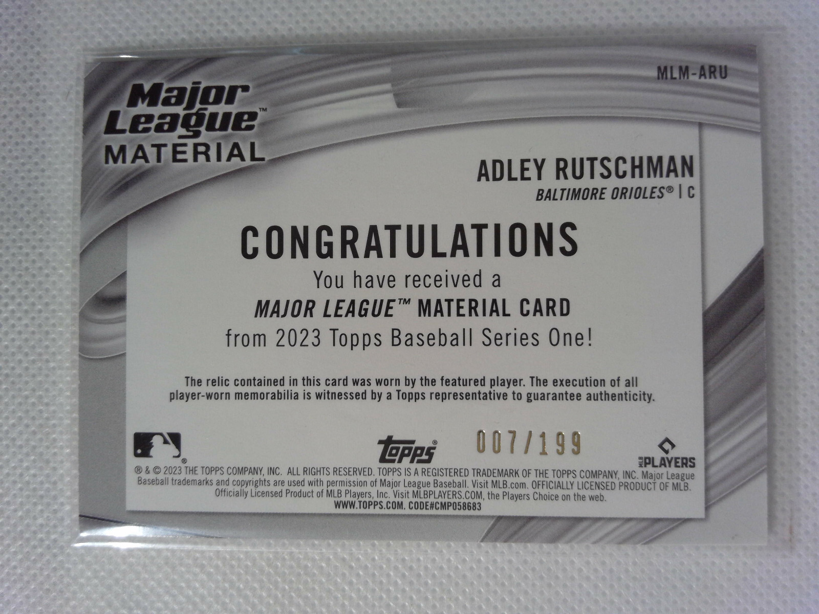 This Adley Rutschman rookie relic is a must-have for collectors! The black parallel /199 looks sharp, and the jersey swatch stands out beautifully. The seller provides clear photos and careful packaging—great service. A fantastic addition to any Orioles or prospect collection!