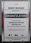 This 2023 Topps Series 1 baseball trading card features a commemorative patch of Manny Machado, a player for the San Diego Padres in the Major League Baseball (MLB). The card number is TLP-MM and it is part of the 2023 Topps Series 1 set. The patch adds a unique element to the card and makes it a great addition to any collection. This card is perfect for fans of baseball and collectors alike who are looking to add a special piece to their collection.