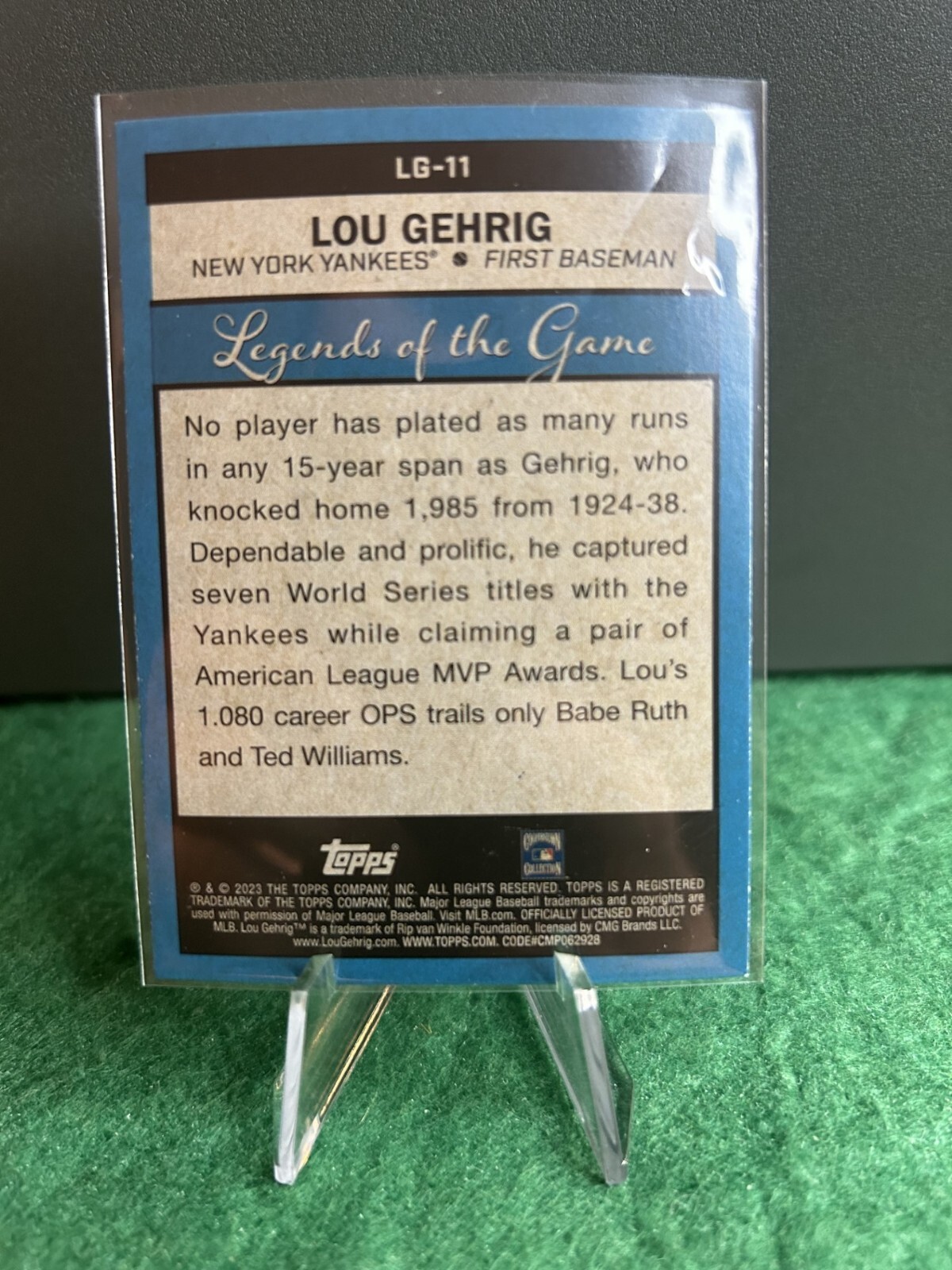 Original/Licensed Reprint:OriginalMaterial:Card StockParallel/Variety:Silver FoilCard Size:StandardManufacturer:ToppsYear Manufactured:2023Set:2023 ToppsSeason:2023Autographed:NoSport:BaseballLanguage:EnglishLeague:Major League (MLB)Team:New York YankeesPlayer/Athlete:Lou GehrigType:Sports Trading CardVintage:NoFeatures:InsertCountry/Region of Manufacture:United States