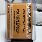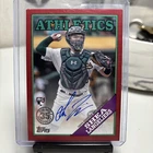 A 2023 Topps Shea Langeliers trading card featuring an autograph signed by Shea Langeliers, a player for the Oakland Athletics. This card is from the 1988 Topps Retro Rookie Autograph set and is a Red parallel variety with a limited edition of 12/25. The autograph is hard-signed and authenticated by Topps. The card is in excellent condition and is made of card stock. It is an original, licensed reprint manufactured by Topps in the United States for the 2023 season. **I pulled this card with soft/whitened corners - not bad but full disclosure!