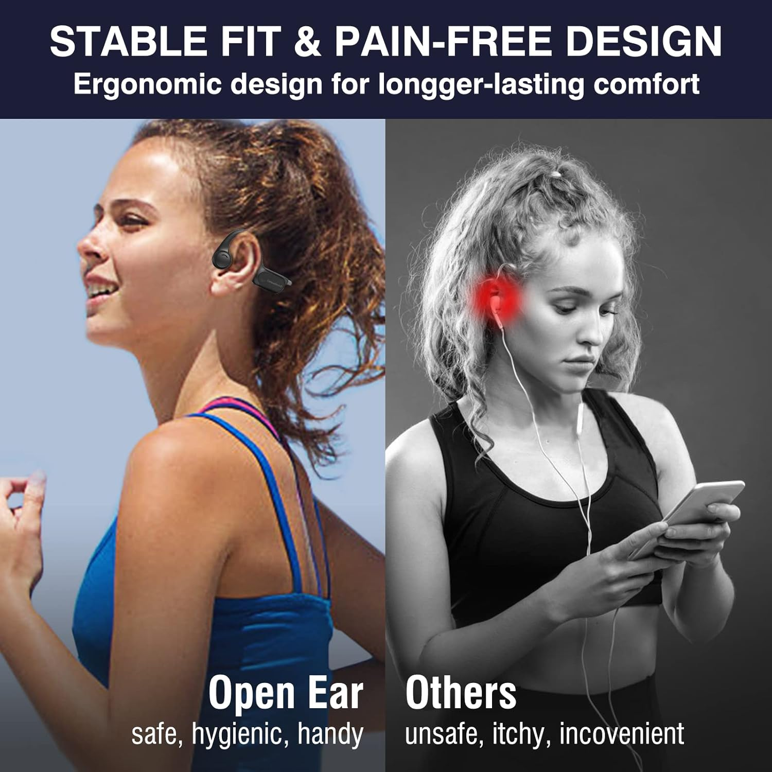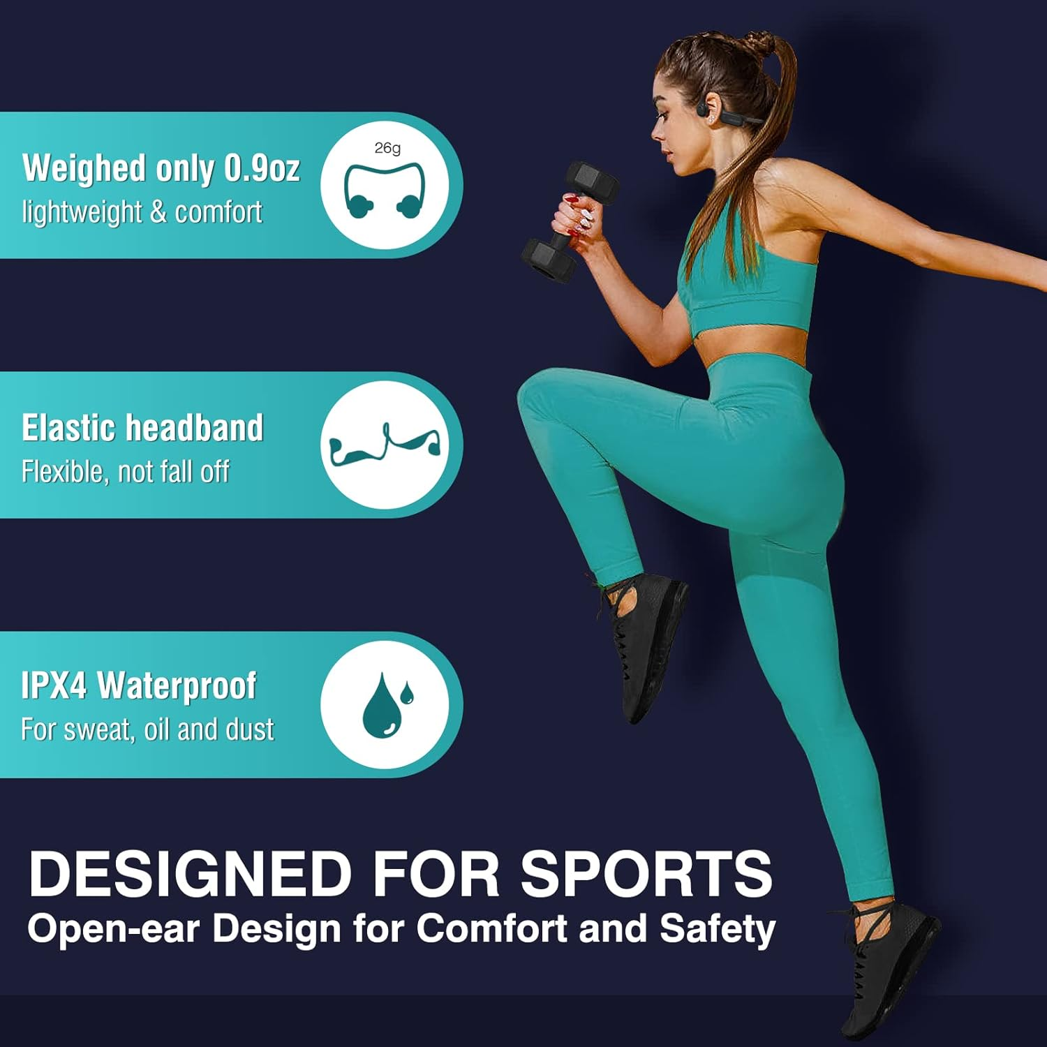 Store New Arrivals Add to Favorite View Feedback Contact Bone Conduction Headphones, 2023 Upgraded Open-Ear Wireless Bluetooth Sports Headphones with Mic, 10Hr Playtime, Bluetooth 5.2 Wireless Earphones Waterproof for Workout, Running, Biking, Hiking, Gym Description Item model number S100 Bluetooth Version 5.2 Style Modern Number of Items 1 Control Method Touch Theme Sports Battery Life 10 Hours Noise Control Sound Isolation Bluetooth Range 10 Meters Control Type Media Control Wireless Communication Technology Bluetooth Cable Feature Charging Cable & Data Cable Product Dimensions 4.92 x 3.94 x 1.57 inches Material Silicone, Titanium Package Type FFP Age Range (Description) Adult Ear Placement Open Ear Audio Driver Type Bone Conduction Driver Form Factor On Ear Specific Uses For Product Amateur, Personal, Business Included Components Type-C Fast Charging Cable, Manual Model Name Celsus Unit Count 1.0 Count Country of Origin China Water Resistance Level Waterproof Item Weight 0.917 ounces Connectivity Technology Wireless Headphones Jack Type C Charging Time 1.5 Hours Color Red Compatible Devices Car Audio Systems, Cellphones, Laptops, Desktops, iphone Batteries Lithium Polymer batteries required. (included) Recommended Uses For Product Cycling, Running, Exercising Earpiece Shape around_ear 【Upgraded Bone Conduction Headphones】CelsusSound open-ear headphones adopt the latest non-vibrating bone conduction technology, with nothing stuck in your ears, allowing you to be aware of your surroundings while listening to music. Customized and designed by professional acoustic engineers, they feature louder highs, softer mids and heavier bass. These bone conduction headphones are also equipped with improved audio processing technology and clear resolution, bringing you a listening experience like being at a concert. 【Lightweight and Comfortable to Wear】The running headphones use a wrap-around titanium frame and an ultra-lightweight design, weighed only 0.9 ounces. A bud-free design and ergonomic wearing style to maximize fit and comfort, you will not feel any pain even after prolonged wearing. The lightweight titanium headband is extremely ductile and can be quickly restored to its original shape after being folded at will, flexible and durable for different head sizes. The workout headphones with IPX4 Certified Waterproof Rating are the perfect choice for sports enthusiasts, suitable for running, biking, driving, gym and even extreme sports, etc. 【10Hr Battery Life & Type-C Fast Charging】Strongly upgraded battery life allows you to enjoy 10 hours of music, calls, audiobooks, podcasts and more continuously. This headphones adopt Type-C fast charging that is safe and stable, so you never have to worry about traveling without your music. Supports dual-sided charging function, 20 minutes on a single charge ensures up to 2 hours of battery life. Saving time for you. 【Bluetooth Headset with Microphone】The upgraded Bluetooth 5.2 headset frees you from the clutter of cables and you will feel like music has become a part of you. Widely compatible with Android, IOS, TV, Video Conferencing and any other devices that support Bluetooth connectivity. Not only perfect for sports, but also useful for business people who often work from home and hold video conferences. 【Perfect After-Sales Service】You get a 90-day money back and warranty, if you have any questions, please feel free to , we will reply and solve all your problems within 6 hours. We care about all the details and value the customer's shopping experience. Each headset is tested manually, add it to your cart and it will become your favorite sports partner and a perfect gift for your loved ones, family and friends. For more details, please refer to the product description. Product Description A New Way to Listen! Born for Sports! If you are still troubled by the discomfort caused by wearing traditional in-ear earbuds for long periods of time during exercise, then congratulations that you have found the best solution. CelsusSound is a famous brand of sports headphones. We developed this upgraded version of bone conduction headphones to meet the needs of sports enthusiasts, provide you with energy and fun during boring sports. Unique Advantages of CelsusSound Bone Bonduction Headphones 1 -Lightweight design with 0.9oz, comfortable to wear 2-Upgraded Bluetooth 5.2 Technology 3-Noise cancelling microphone for clearer calls 4-220mAh large capacity battery, up to 10H playtime 5-USB C fast charging, two sides are available 6-IPX4 waterproof for sweat, dust, oil and particles 7-Individual buttons for easy to control Open-Ear Design, Comfortable to wear, you will not feel any pain even after prolonged wearing Being different from in-ear type, open ear headphones can protect the eardrum from damage when people listen to music for a long time, and won't make the ear pain unbearable either because of long time wearing. Open-ear design can avoid some dangerous situations from happening as you can also hear the surroundings when you use it to listen to music. Unlike wearing traditional earbuds headphones and headset that you aren't isolated from the environment completely, ideal for sports personnel to use. Security is very important to Us When we are exercising, we sometimes get very bored and need a headset to give us energy and fun, CelsusSound open sports headphones allow you enjoy high quality music and be aware of the changes in your surroundings, safely and comfortably. With 10 hours of extra-long power, you can run 2 marathons without any problem, and you don't have to worry about running out of power during exercise at all. Upgrade 5.2 Bluetooth technology Imported Qualcomm chip, providing more efficient connection and more stable signal.(up to 2 times than BT5.0) Type-c Fast charging Double-sided charging design, Support fast charging function, convenient and fast, save your time. Independent button with blind spot for simpler operation L