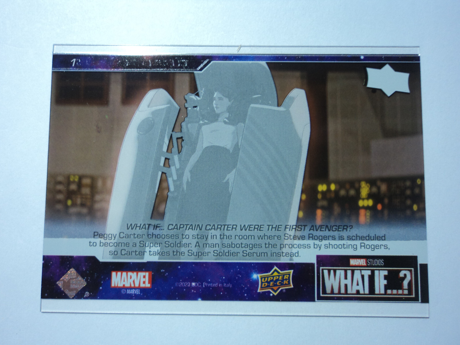 PLEASE DO NOT PAY FOR MULTIPLE PURCHASES SEPARATELY ______________________________________________________________________________________________ Here's what you get: Marvel What If ? - Upper Deck - 2023 CHASE CARD CLEAR CUT CHAPTERS - EPISODE 1 # 1 What If...Captain Carter Were The First Avenger? ______________________________________________________________________________________________ Card stored in a smoke-free home. Payment due within 48 hours of purchase. NOTE: IF PURCHASING FROM MORE THEN ONE LISTING, PLEASE DO NOT PAY FOR THEM SEPARATELY, RATHER REQUEST AN INVOICE FROM ME, OR AWAIT RECEIPT OF AN INVOICE FROM ME BEFORE PAYING. When possible, I will combine shipping and handling. A tracking number will be provided on all First Class and Priority packages. You must have a confirmed eBay mailing address. My goal is to provide excellent service to buyers, so I may earn your business over and over. Any questions, please feel free to e-mail me. Please check out my other listings. Happy Collecting. ______________________________________________________________________________________________