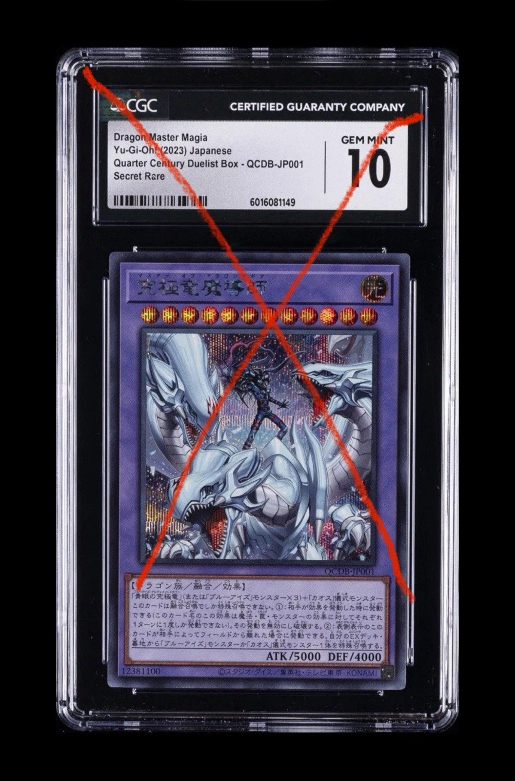 Dive into the world of Yu-Gi-Oh! TCG with the prestigious #QCDB-JP001 Dragon Master Magia card, a must-have for collectors and duelists alike. This card boasts a CGC 10 Gem Mint grade, ensuring its top-notch quality and preservation. Crafted in Japanese, it connects you to the rich heritage of the game's origins. The year 2023 sees this particular card being a part of the - Yugi - set, marking it as a contemporary release that has been graded for its impeccable state. Whether you're looking to enhance your collection or dominate the battlefield, this Dragon Master Magia card is an exceptional choice for players and collectors. You will receive one of the above pictured cards all CGC graded and bought directly from PSA vault
