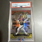 This is a 2023 Select C.J. Stroud sports trading card with a Yellow parallel, graded Gem Mint 9 by Professional Sports Authenticator (PSA). The card features a red yellow die cut design and is from the 2023 season. It is a sought-after collectible item for fans of football trading cards.
