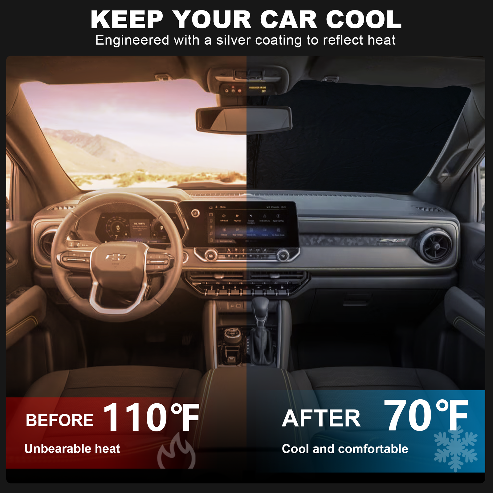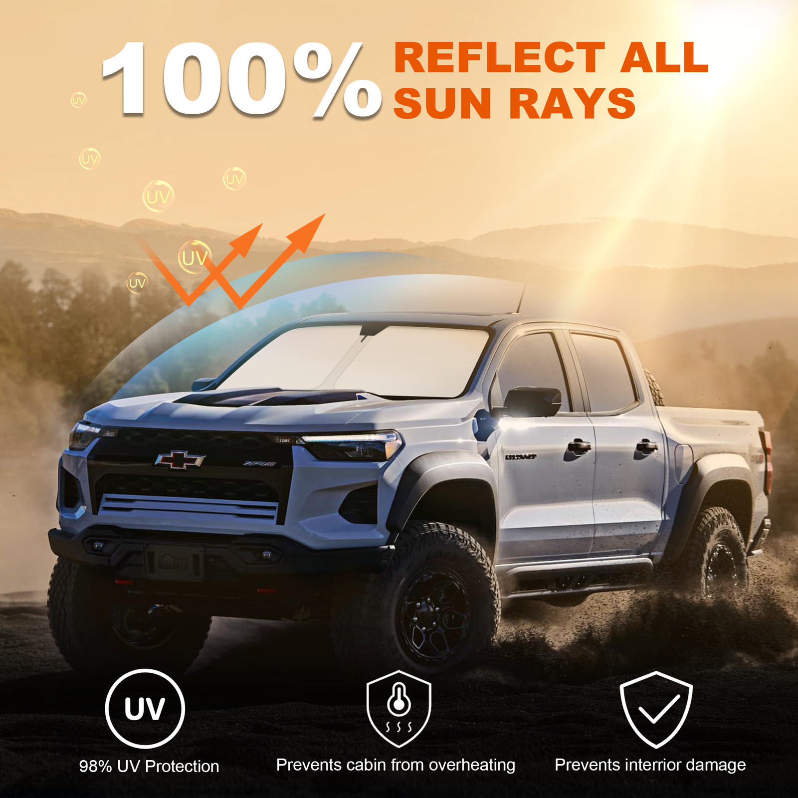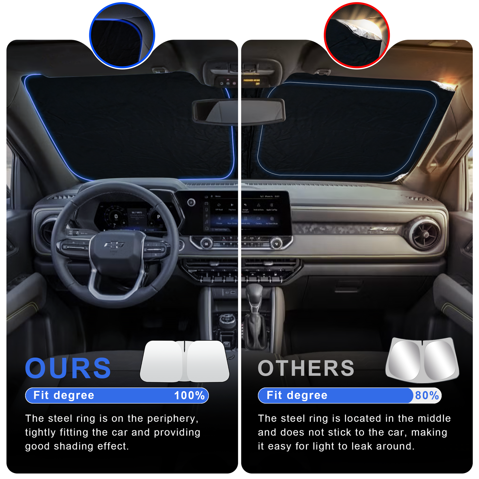 For Chevy Colorado 2023-2025 Car Front Windshield Sun Shade Shield Cover Visor Fitment For Chevrolet Colorado 2023-2025 Feature Custom Fit —— Perfectly fit for Chevrolet Colorado 2023-2025 .Highly precision model design,fits the edges exactly and just put it in your car windshield window.According to the car size design,100% fit your car and does not need to trim. Upgraded Design —— Unlike other products on the market, we use a double layer of heat shield fabric to keep out the sun. The first layer is premium 210T reflective polyester and the second layer is high-quality fabric. Double insulation, and double protection.The best shade and insulation on the market. Keeps Cool —— Made of premium 210T reflective polyester to reduce heat buildup up to 40°F, it will block 99% of damaging UV rays. Keep your car cooler. Easy to use and store —— The shade can be easily popped up and folded in seconds for everyday use. You can easily tuck the sunshade into your door pocket. Specification Product Name: Car sunshade Suitable for: Front Windshield Material: High quality nylon with foldable metal frame Color:Black +Silver Tone Net Weight:200g Package Included 1 X Car Front Windshield Sunshade 1 X Sunshade Storage bag Payment We can accept payment of Paypal only. Payment should be made within 7 days after purchasing. (No payment orders eBay system will automatically open unpaid dispute, and this is not good to your account.) Shipping Item will be shipped out within 48 hours upon receipt of your cleared payment. We can not ship on Sundays and other public holidays. International Buyers Please Note: 1, Import duties, taxes and charges are not included in the item price or shipping charges. These charges are the buyer's responsibility. 2, Please check with your countrys customs office to determine what these additional costs will be prior to bidding/buying. Please make sure your address in paypal is correct. we will only follow your address listed in the Paypal payment for the shipment. Combine shipment is not allowed. If you want to combine all the items together, you should still pay for all of the shipping, insurance and handling fee! Returns We offer you 30 days return. The buyer is responsible for return shipping including a result of customer error or wrong item bought: 1) If you received an incorrect, damaged, defective, or item not as described, contact us for a partial/full refund or replacement on our cost. 2) If you want to return the item, please contact us within 60 days after package received. Return products must also be in its original condition: including box, packaging and all other accessories. Feedback 1.We are appreciated your business and to improve our customer service and our commitment to quality. 2.We will leave a positive feedback immediately after payment is received. We appreciate a positive feedback as much as you do. 3.If for some reason there is any issue with the purchase, please contact us prior to leaving feedback, and we will be glad to work with you to have it resolved. Contact Us We do appreciate your purchase from our store. If you are satisfied with the item as well as our service, please kindly leave us a Positive Feedback to help develop our business. Thank you in advance. Our office hours are MONDAY - FRIDAY 9:00PM - 18:00PM PST , we do not answer any E-mails or eBay messages on weekend. All E-mail or eBay message take us around 24 hours to respond. Thanks a lot. For Chevy Colorado 2023-2025 Car Front Windshield Sun Shade Shield Cover Visor Fitment For Chevrolet Colorado 2023-2025 Feature Custom Fit —— Perfectly fit for Chevrolet Colorado 2023-2025 .Highly precision model design,fits the edges exactly and just put it in your car windshield window.According to the car size design,100% fit your car and does not need to trim. Upgraded Design —— Unlike other products on the market, we use a double layer of heat shield fabric to keep out the sun. The first layer is premium 210T reflective polyester and the second layer is high-quality fabric. Double insulation, and double protection.The best shade and insulation on the market. Keeps Cool —— Made of premium 210T reflective polyester to reduce heat buildup up to 40°F, it will block 99% of damaging UV rays. Keep your car cooler. Easy to use and store —— The shade can be easily popped up and folded in seconds for everyday use. You can easily tuck the sunshade into your door pocket. Specification Product Name: Car sunshade Suitable for: Front Windshield Material: High quality nylon with foldable metal frame Color:Black +Silver Tone Net Weight:200g Package Included 1 X Car Front Windshield Sunshade 1 X Sunshade Storage bag On Feb 27, 2025 at 01:51:31 PST, seller added the following information:
