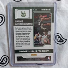 Experience the excitement of the 2023-24 Panini Contenders with this rare Game Night Ticket #23 featuring the incredible Giannis Antetokounmpo of the Milwaukee Bucks. This Sports Trading Card is a must-have for any NBA fan and collector. The card is in excellent shape, Near mint or better, and is part of the ungraded set. With its unique features and insert set, this card is a great addition to any collection. Don't miss out on the chance to own this amazing piece of sports memorabilia.