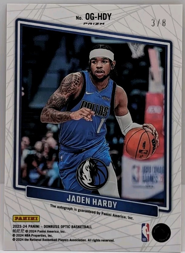 2023-24 Panini Donruss Optic Jaden Hardy Opti-Graphs Black Gold Mojo Auto #3/8. Condition is Ungraded. Shipped with USPS Ground Advantage.