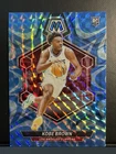 This is a rare 2023-24 Panini Mosaic #209 Kobe Brown Reactive Blue RC sports trading card. The card features the Los Angeles Clippers player in his rookie year, with a unique corner ding design. It is a must-have for any NBA fan or collector, especially those who admire Kobe Brown's skills on the court. The card is ungraded and comes from the Reactive Blue RC insert set, with parallel/variety features. It is perfect for those who appreciate the intricacies of sports trading cards. This card is a great addition to any collection and is sure to impress.