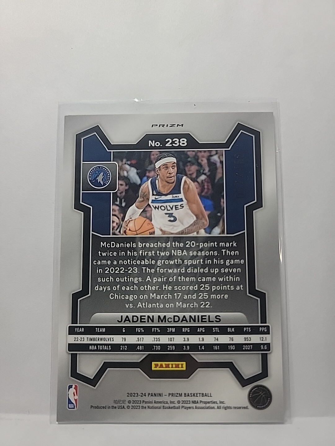 2023-24 Panini Prizm Pandora Jaden McDaniels /150 SP Exclusive. Condition is Ungraded. Shipped with eBay Standard Envelope for eligible items up to $20.