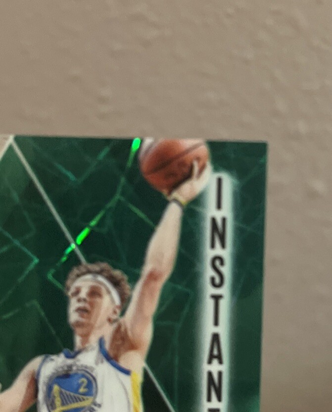 The product is a 2023-24 Panini Phoenix sports trading card featuring Brandin Podziemski, a rookie player for the Golden State Warriors in the NBA. This particular card is a Green Lazer parallel variety with a limited print run of 175, and it is serial numbered as 134/175. It is an original card from Panini, showcasing Podziemski as an "Instant Phenom" in the basketball world. This collectible item is a sought-after piece for fans and collectors looking to add a unique and rare rookie card to their collection.