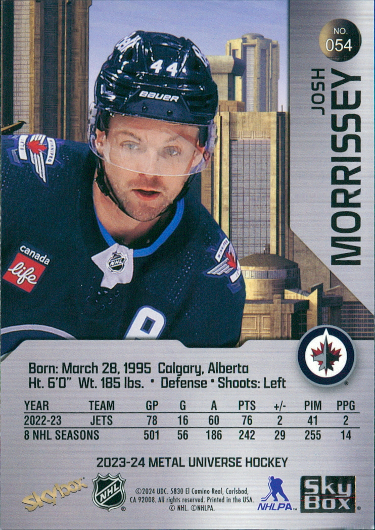 2023-24 Skybox Metal Universe Josh Morrissey #54 Hockey Card