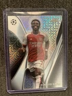 This rare 2023-24 Topps Chrome UEFA Club Competitions sports trading card features Arsenal's rising star, Bukayo Saka. The card is a must-have for any soccer fan and collector, with its stunning Mojo parallel/variety and short print features. The set is manufactured by Topps, a trusted name in the industry, and is part of the 2023-24 season. The card is a great addition to any sports trading card collection and is perfect for displaying or trading. Don't miss out on the opportunity to own this rare and unique card.