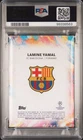 This 2023-24 Topps Inception UCC #15 trading card features Lamine Yamal of FC Barcelona and Spain. The card is part of the Topps Inception - Succession set and is an original, not a licensed reprint. It is a rainbow foil parallel variety with a print run of 150 and has been graded a perfect PSA 10. The card is in standard size and was manufactured by Topps in 2024. It is a sports trading card for soccer fans and collectors, featuring players like Endrick, Diego Maradona, Ethan Nwaneri, Cristiano Ronaldo, and Lionel Messi. The card is also serial numbered and comes with a base set and rookie features. It is a great addition to any collection and perfect for fans of FC Barcelona and Spain.
