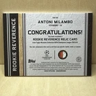 This rare 2023-24 Topps Museum Collection Rookie Reverence sports trading card features Antoni Milambo of Feyenoord. The card is a parallel variety relic with a print run of 05/99, and is an original Topps manufacture. The card name is Rookie Reverence and it is part of the 2024 Topps Museum Collection set. The card is made of paperboard and card stock material, with English language text. It is a standard size sports trading card and is not autographed. This card is perfect for fans of soccer and collectors of trading cards, especially those who appreciate the unique features of this particular card, including its serial number, rookie status, and memorabilia.