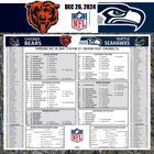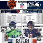 For sale, the game issued Flipcard and Media Program Notes from Chicago Bears vs Seattle Seahawks game in Chicago. Thursday Night Football, December 26, 2024. What you get: 1. 11x14 Game Issued Media Issued NFL Flipcard - Chicago Bears vs Seattle Seahawks 2. Bears Media Program Game Note - 8.5" x 11" (1-page) 3. Seahawks Media Program Game Note - 8.5" x 11"(1-page) 4. Plastic protector sheet - 11"x17"