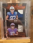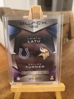 The product is a 2024 Panini Black football trading card featuring rookies Dallas Turner and Laiatu Latu. It is a memorabilia card with a laundry tag from the Indianapolis Colts and Minnesota Vikings. The card is serial numbered out of 50 and is in near mint or better condition. It is ungraded and includes features like being a parallel/variety, insert, and rookie card. card is as pictured.