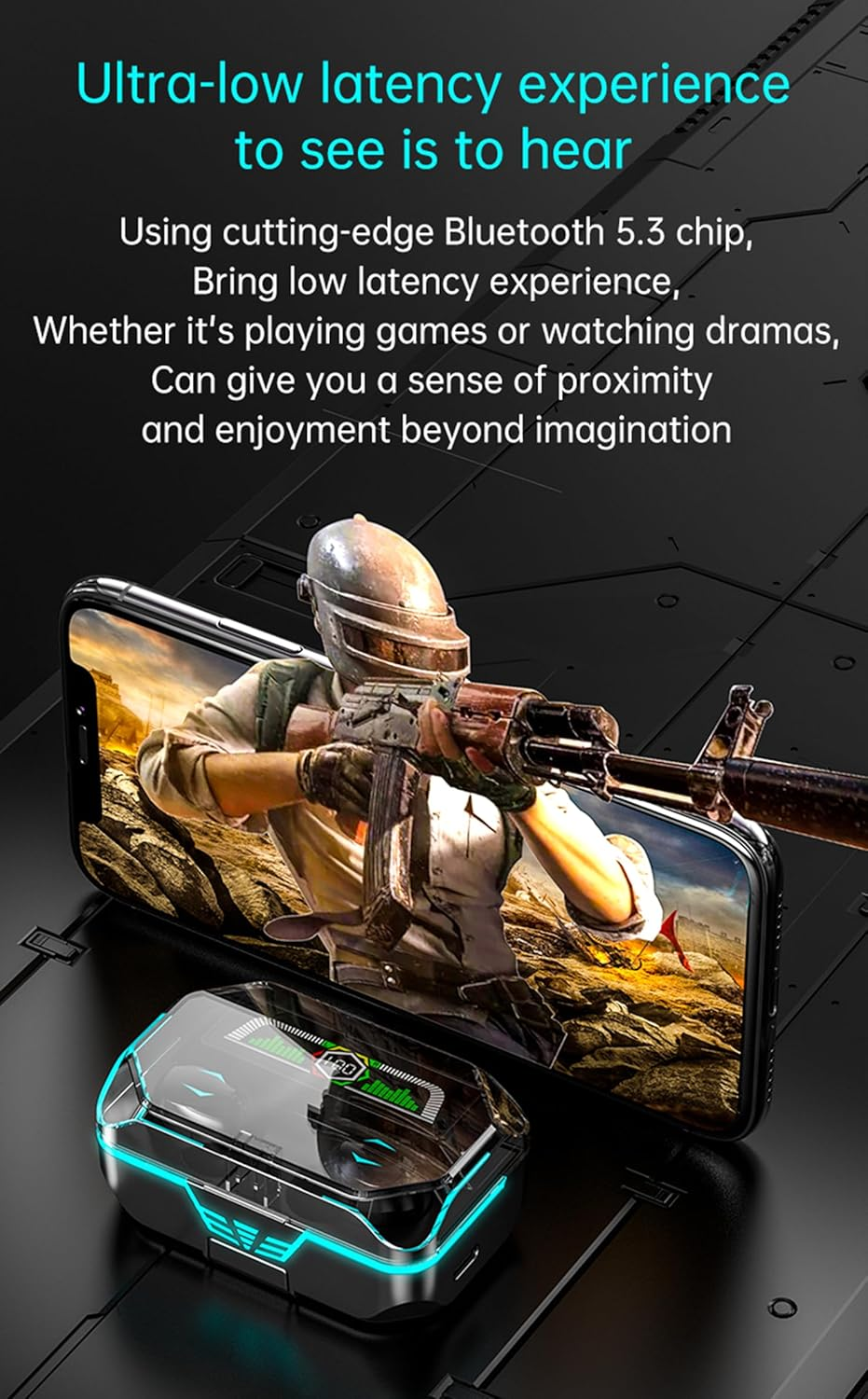 $ 13.2Wireless Bluetooth 5.3 Earbuds with Digital Display Case 60H Playtime
