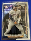 This 2024 Bowman Chrome TREY CABBAGE Base Rookie RC #100 Houston Astros Baseball card is a must-have for any avid baseball card collector. The card is made of high-quality card stock with a thickness of 35 Pt. and features a stunning chrome design. It is an original Topps manufacture with a limited edition and exclusive collectors edition. The card is part of the 2023 Bowman Chrome set and is a parallel/variety with a hologram and framed design. It is a first edition and insert with a short print and is a base set card. The card is perfect for fans of the Houston Astros and Major League (MLB) baseball.