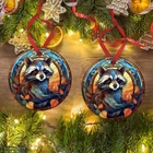 [Raccoon Stained Glass Window Ceramic Ornament - Elegant Christmas Decor] Unique Design: Bring a touch of wildlife elegance to your Christmas decor with this charming raccoon ornament. Beautifully captured in a stained glass window style, it adds a whimsical yet sophisticated element to your festive display. Premium Quality: Crafted from high-quality ceramic, this ornament is durable and long-lasting, ensuring it can be cherished for many Christmases to come. Perfect Size: Measuring approximately 3 inches in diameter, it's the ideal size for hanging on your Christmas tree, mantel, or any festive display. It complements your holiday decor without overpowering it. Versatile Decoration: This ornament is perfect for trees, wreaths, or as a standalone decoration on a gift-wrapped present. Its versatile design makes it a standout addition to any holiday setup. Thoughtful Gift: An excellent gift choice for raccoon lovers, family, and friends. Spread joy and warmth during the holiday season with this delightful ornament. Gift-Ready Packaging: Comes with a ribbon for easy hanging and arrives in a protective gift box. Ready to gift or store, it’s the perfect holiday keepsake. Easy Maintenance: Simple to clean and store, ensuring that this ornament will continue to brighten your holidays year after year. Product Description: Celebrate the holiday season with the Raccoon Stained Glass Window Ceramic Ornament . Perfect for adding a touch of charm and elegance to your festive decor, this ornament features a beautifully detailed raccoon design in a stained glass window style. Key Features: Unique Design: Captivating raccoon in stained glass window style. Premium Quality: Durable ceramic construction for long-lasting use. Perfect Size: 3-inch diameter, ideal for various festive displays. Versatile Decoration: Suitable for trees, wreaths, or as standalone decor. Thoughtful Gift: Perfect for raccoon lovers, family, and friends. Gift-Ready Packaging: Comes with a ribbon and protective gift box. Easy Maintenance: Simple to clean and store. Why You'll Love It: Elegant Design: Adds a touch of sophistication to your Christmas decor. Durable: Made from high-quality materials for lasting enjoyment. Ready to Gift: Thoughtfully packaged for immediate gifting or storage. Specifications: Material: High-quality ceramic Size: Approximately 3 inches in diameter Print Type: UV Printing on both sides Package Includes: Ornament with ribbon for hanging and protective gift box Brighten your holiday season with the Raccoon Stained Glass Window Ceramic Ornament . Order now and add a unique, elegant touch to your Christmas celebrations!