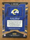 The 2024 Panini Gold Standard Blake Corum Newly Minted Rookie Patch card features a limited print run of 499 and is part of the Gold parallel variety. This sports trading card showcases a memorabilia patch of the player from his time with the Michigan Wolverines, now playing for the Los Angeles Rams in the National Football League (NFL). The card is in near mint or better condition, making it a desirable collectible for fans of both college and professional football.