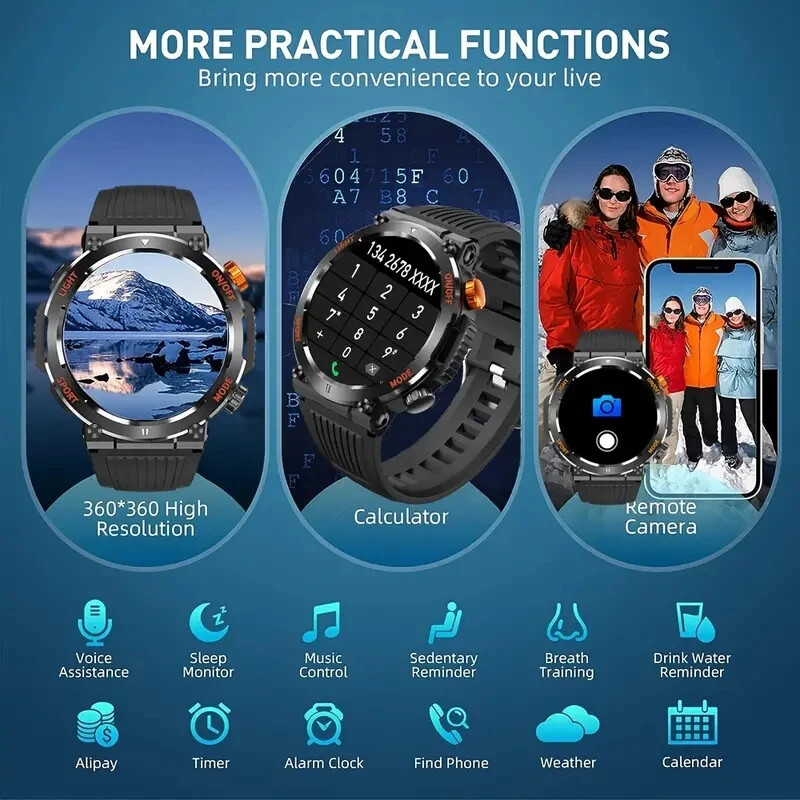 This smartwatch is a game-changer! The bright 1.46" display looks amazing, and the flashlight feature is super handy. Love that it's waterproof and rugged for outdoor adventures while tracking all my fitness stats. The battery lasts forever, and Bluetooth 5.0 keeps it connected smoothly. With so many language options, it's perfect for travelers too!