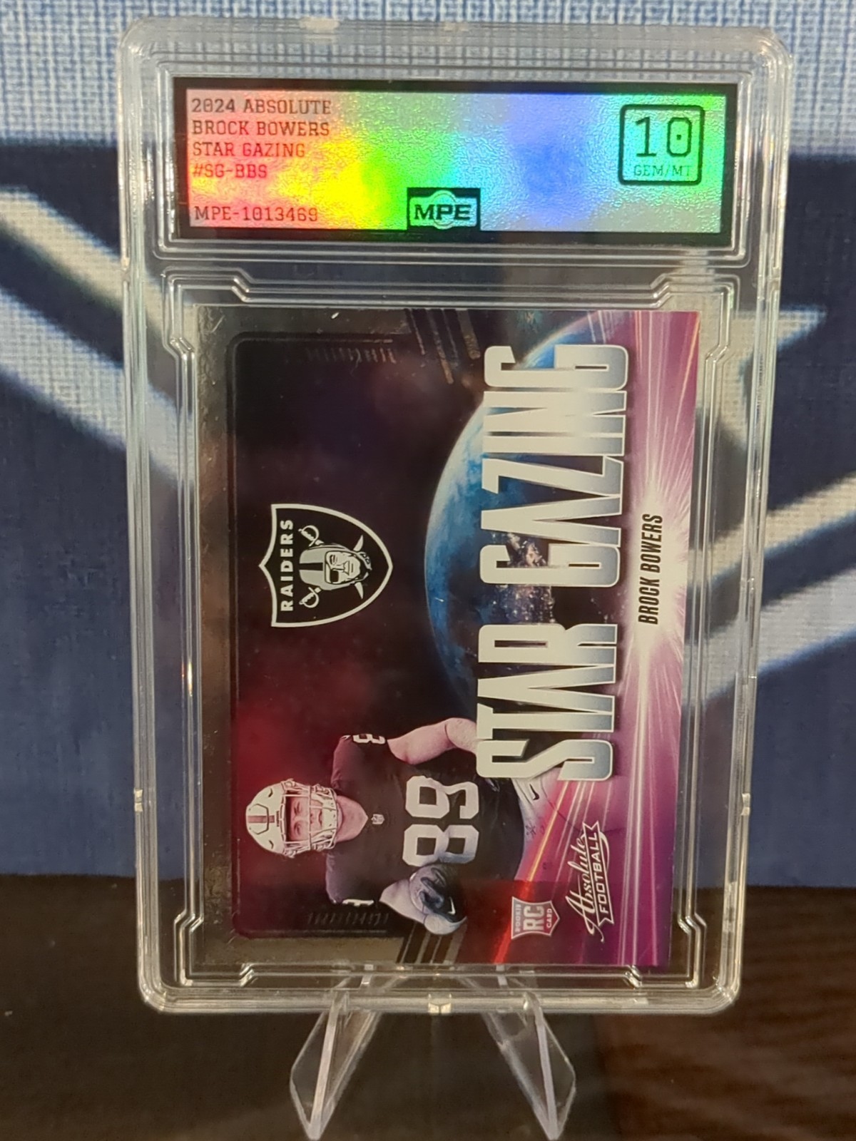 Capture a piece of football history with the 2024 Panini Absolute - Star Gazing Brock Bowers #SG-BBS (RC) trading card. This collectible card features the highly-touted rookie, Brock Bowers, and is a must-have for fans and collectors alike. As part of the Star Gazing insert set, it shines a spotlight on one of the Las Vegas Raiders' emerging talents. The card is a solid addition to any NFL collection, boasting the quality and design expected from Panini. With its base parallel/variety, this card is a fundamental piece for those looking to complete the 2024 Panini Absolute set. Whether you're a supporter of the Raiders or a connoisseur of football memorabilia, this trading card is an asset to any assortment.