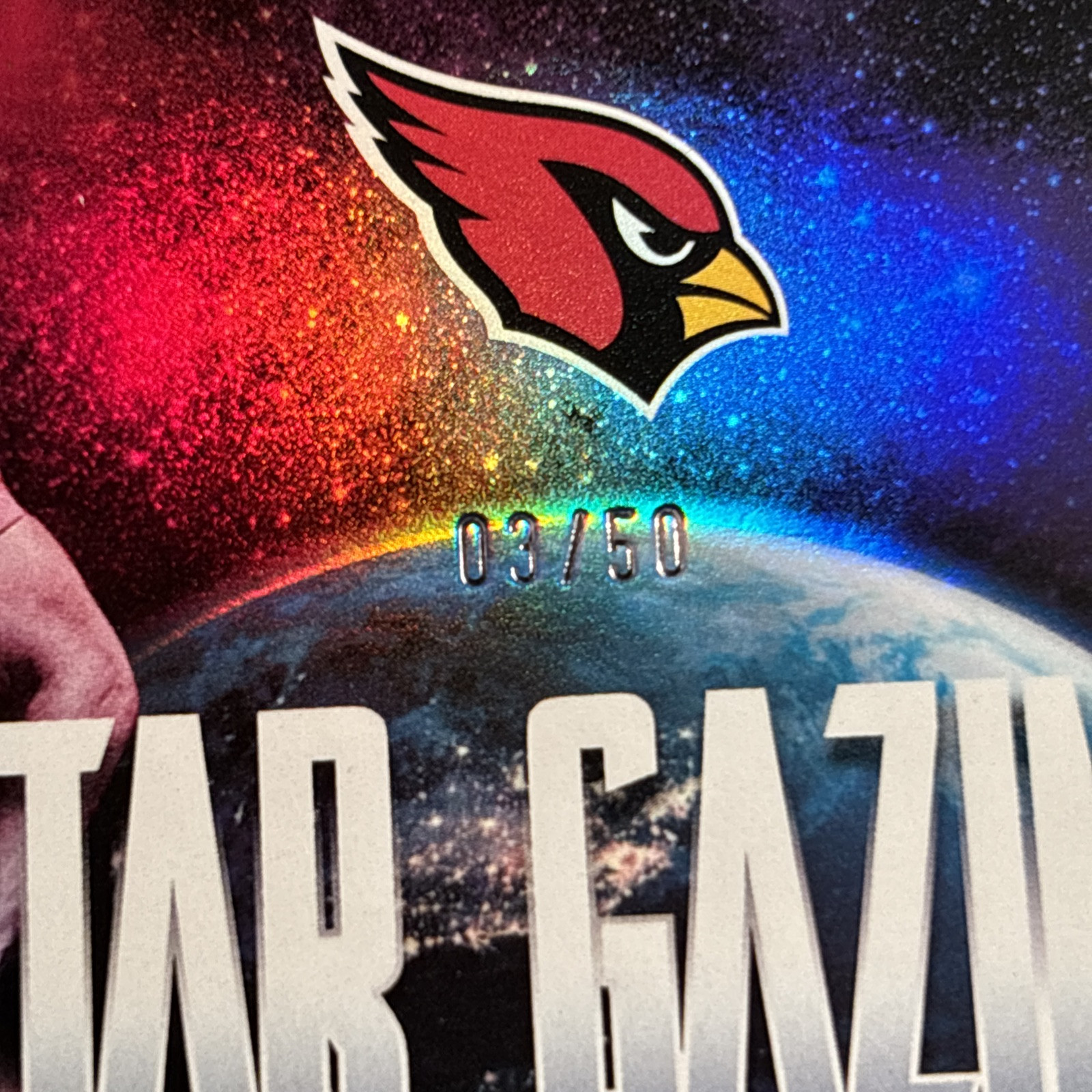 Series:Panini AbsolutePrint Run:50Set:2024 Panini AbsoluteTeam:Arizona CardinalsPlayer/Athlete:Marvin Harrison Jr.Insert Set:Star GazingManufacturer:PaniniCard Number:SG-MHJFeatures:Rookie, Insert, Serial Numbered, Parallel/VarietySport:FootballLeague:National Football League (NFL)Parallel/Variety:Spectrum BlueSeason:2024brand:Panini