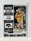 This 2024 Panini Caitlin Clark Collection sports trading card features the Iowa Hawkeyes rookie athlete, Caitlin Clark, and is part of the College Contenders insert set. The card number is CC2 and it is a great addition to any NCAA fan's collection. With its high-quality design and manufacturing by Panini, this card showcases Clark's impressive skills on the court and is a must-have for basketball enthusiasts. Whether you're a collector or simply a fan of the sport, this card is a valuable addition to your collection.