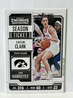 This 2024 Panini Caitlin Clark Collection sports trading card features the Iowa Hawkeyes' rookie player, Caitlin Clark, with card number CC4. The card is part of the College Contenders insert set and is a must-have for basketball fans and collectors. The card is manufactured by Panini and is an excellent addition to any collection. The card's attributes include the player's name, team, league, season, and card number. It is a type of sports trading card that will surely be a valuable part of your collection.