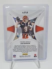 The product is a lot of 3 trading cards featuring Joe Burrow, the quarterback for the Cincinnati Bengals in the National Football League (NFL). Manufactured by Panini in 2024, the cards are part of the Illusions, Mosaic, and Donruss Elite series. Made of card stock and featuring parallel elements, these original sports trading cards showcase the talented player in standard size and English language. Perfect for any fan of football and collectors of sports memorabilia, this lot offers a unique and diverse selection of cards to add to your collection. 2024 PANINI Illusions #5 Donruss Elite #35 Mosaic #EP-JB