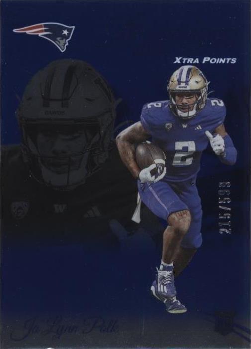 Elevate your football card collection with the Ja'Lynn Polk 2024 Panini Prestige #354 Xtra Points Blue parallel card. This sought-after piece, numbered to just 599, captures the essence of the New England Patriots' dynamic receiver in stunning detail. Crafted from high-quality paper material, the card promises lasting durability and a premium feel. As a standout feature of the 2024 Panini Prestige set, this blue parallel variety is a must-have for enthusiasts and collectors alike. With its distinctive design and rarity, the card is an excellent way to commemorate Ja'Lynn Polk's NFL journey and celebrate the spirit of the game.