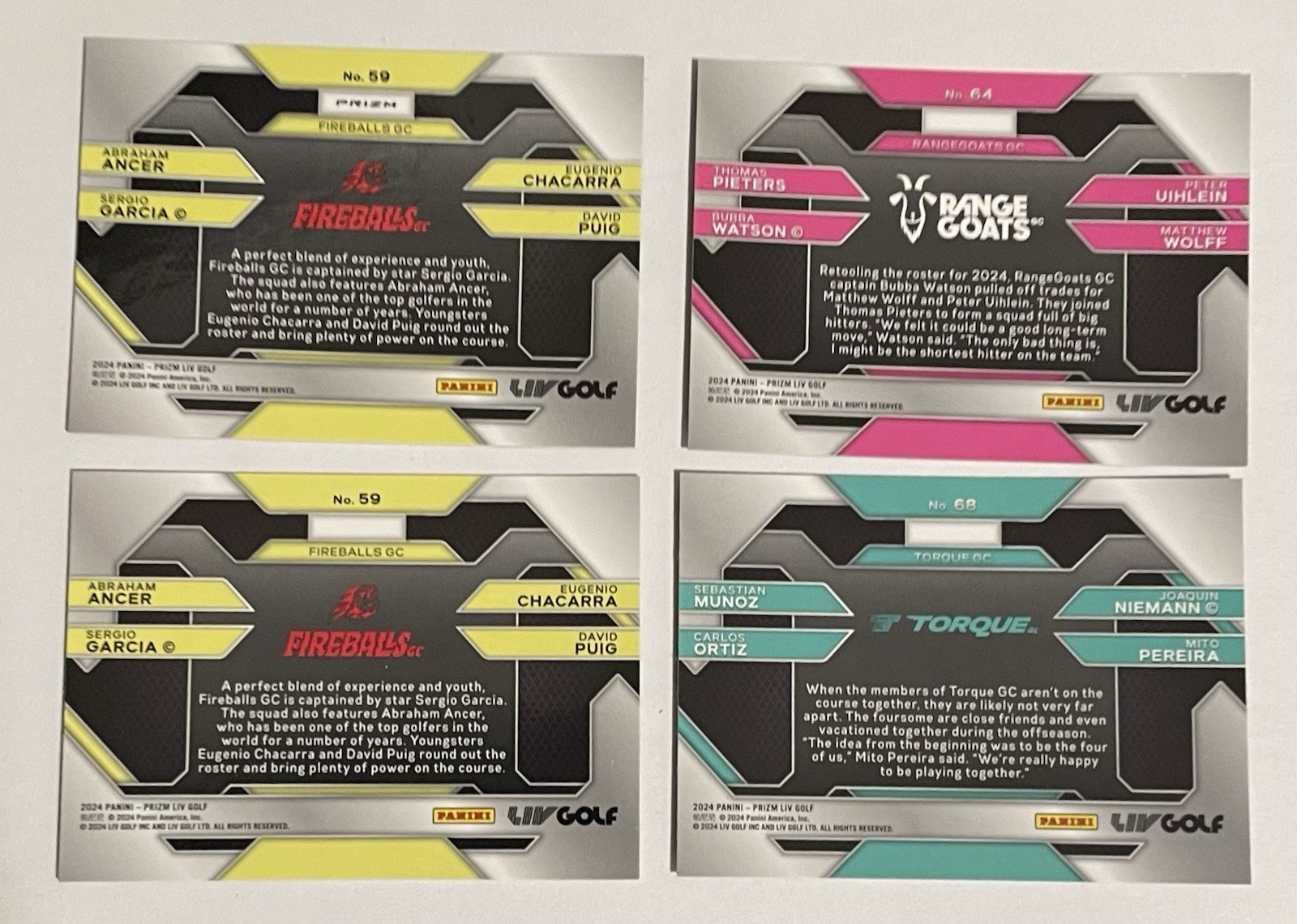 8 card lot for LIV Panini 2024. Sold as is Adrian Meronk Jon Rahm Phil Mickelson Paul Casey Fire balls x2 Range Goats Torque