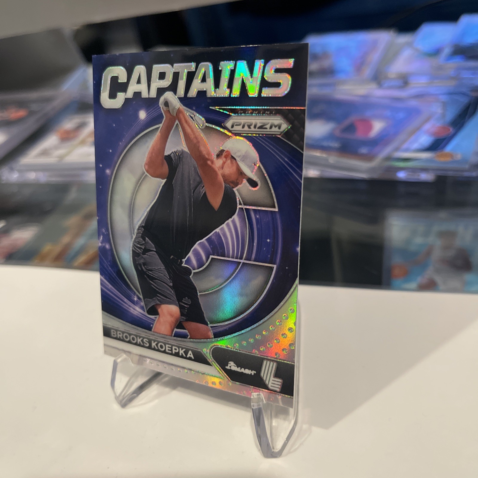 Elevate your collection with the 2024 Panini Prizm LIV Golf card featuring Brooks Koepka of Smash GC. This SILVER Captains card is a must-have for enthusiasts and fans of the Professional Golfers' Association (PGA) and Pro Golf Tour. The card showcases the golf superstar in stunning detail, with the Silver Prizm parallel adding a touch of shimmer to your display. This sports trading card, numbered 72, is part of the esteemed 2024 Panini Prizm set, known for its quality and collectible value. It's a tribute to Koepka's dynamic presence on the green and a fine piece for collectors who appreciate the sport's elite athletes. Whether for your personal enjoyment or as a gift, this card is a hole-in-one for any golf aficionado's collection.