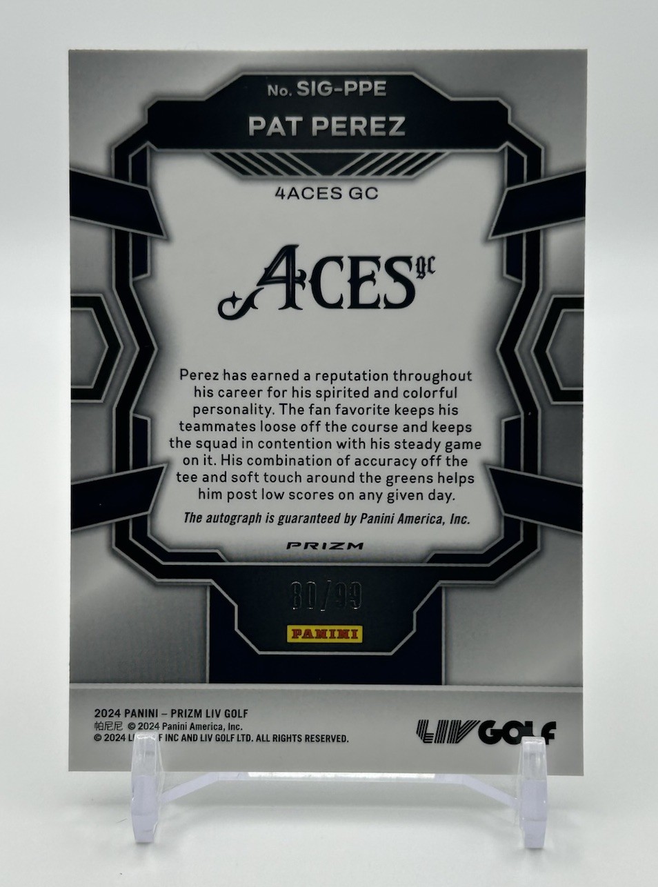 This Liv Golf Prizm auto of Pat Perez is a must-have for collectors! The silver Prizm finish looks sharp, and the on-card signature pops. Limited to just 99 copies, it's a rare gem that would elevate any golf memorabilia collection. The seller's prompt update adds confidence in the purchase. Highly recommended for fans and card enthusiasts alike!