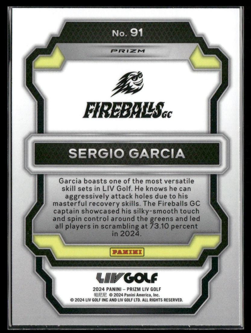 This is a nice example of a 2024 Panini Prizm LIV Golf #91 Sergio Garcia Other important information about this card: Statistical Leader Silver In 2024 Sergio Garcia played for the Fireballs. Please check out our other listings for more great cards.