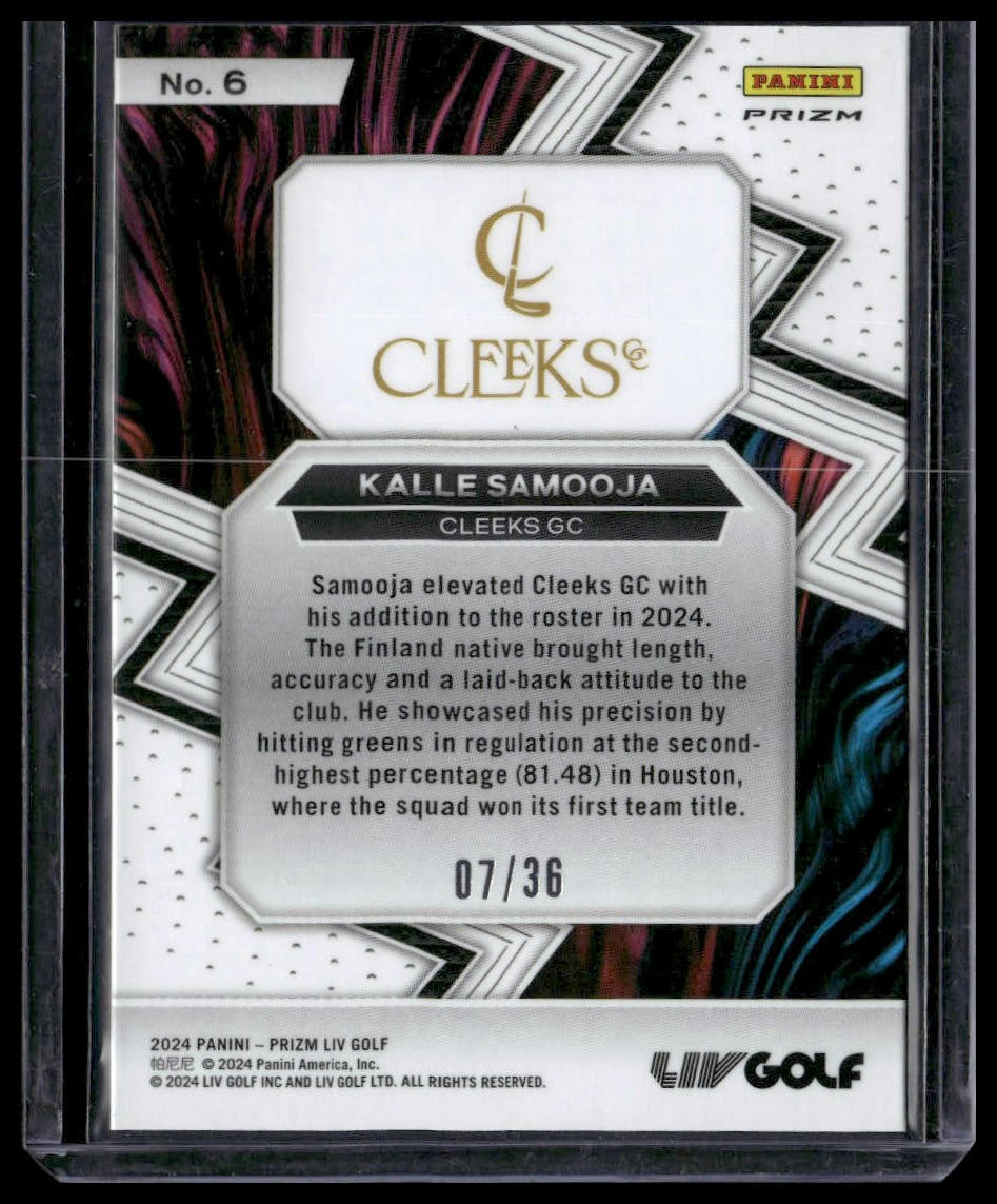 2024 Panini Prizm Liv Golf - Fearless Kalle Samooja #6 White Mojo Prizm /36 (RC)
