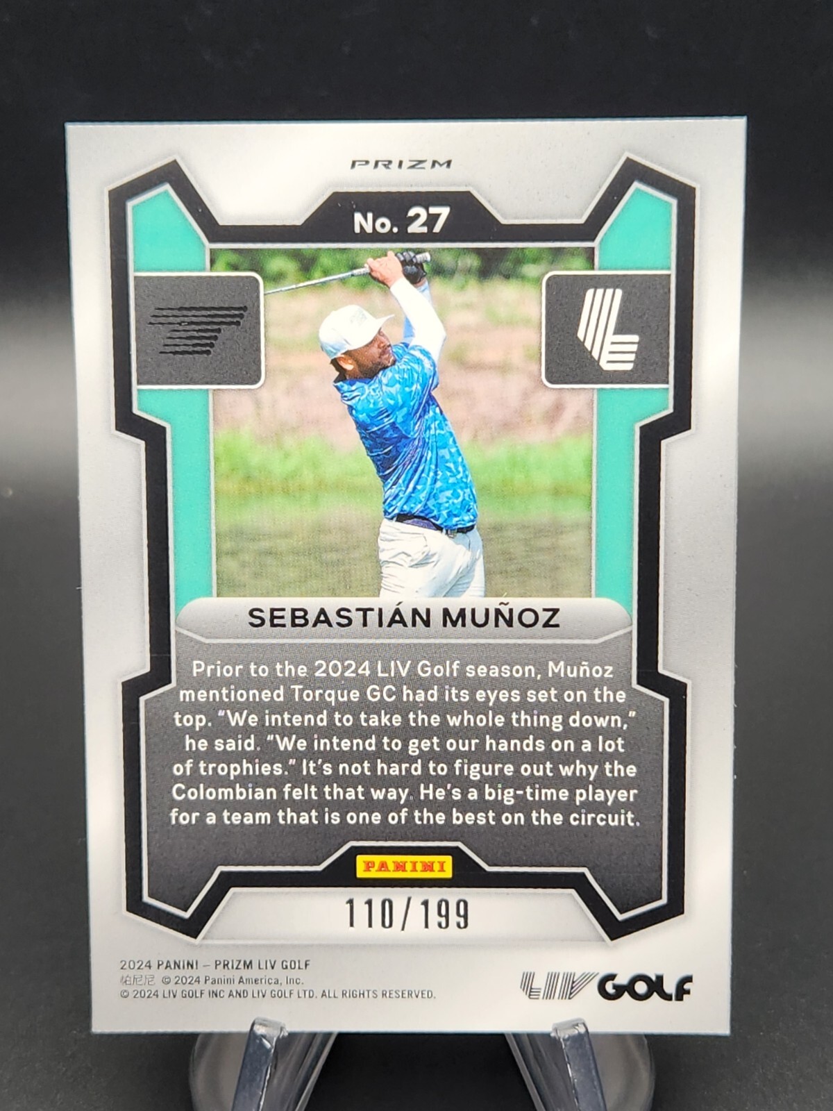 This Sebastian Munoz rookie card is a must-have for golf collectors! The vibrant teal Prizm finish makes it stand out, and being numbered /199 adds serious exclusivity. As part of Panini’s 2024 Prizm set, it’s a sharp-looking card that captures Munoz’s rising career—perfect for both investors and fans. The quality and rarity make it a gem in any collection!