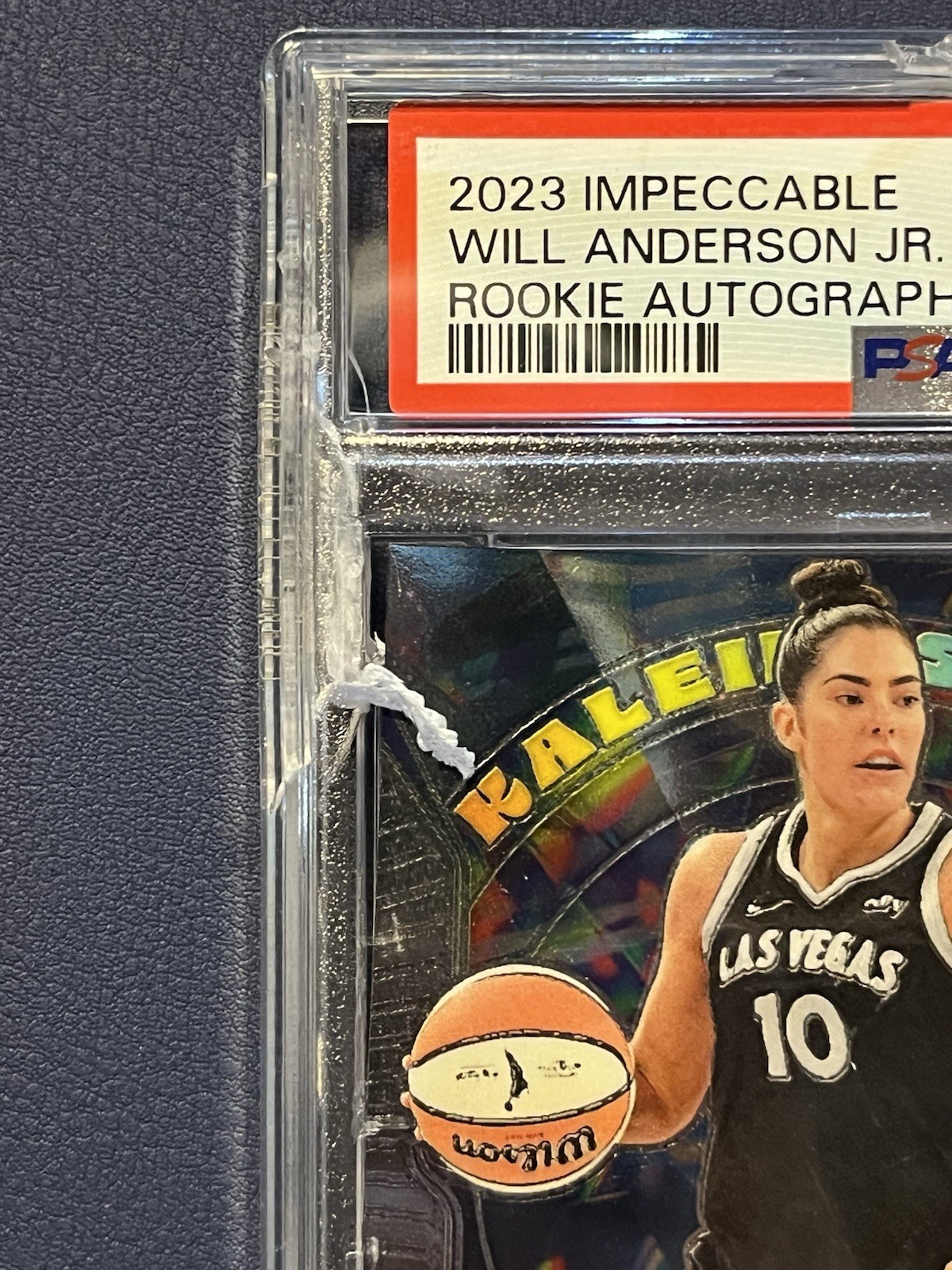 This right here is an INSANELY RARE Kelsey Plum Kalidiscopic Prizm Card!!! Why is it so rare you may ask? It’s just a base insert card??? The reason this card is so rare is because it’s in a Will Anderson Impeccable Auto /49 crack PSA 8 Slab!!!! Get it while it’s hot!!! This is the only card on eBay like this!! DON’T MISS OUT!!! Card is clean see photos for pictures of the corners!