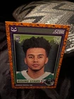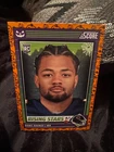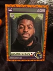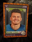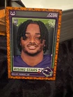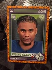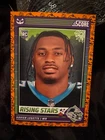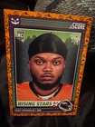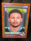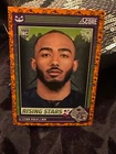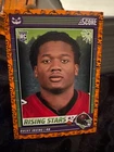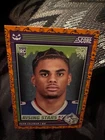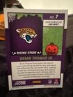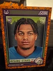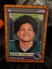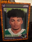 Get ready for Halloween with this 2024 Panini SCORE-A-TREAT Halloween RISING STARS RC Orange Pumpkins trading card. The card features a variety of top football players including Bo Nix, Rome Odunze, Joe Milton, CJ Stroud, Jordan Travis, Patrick Mahomes II, Xavier Legette, Adonai Mitchell, Ladd McConkey, J.J. McCarthy, Josh Allen, C.J. Stroud, Barry Sanders, Brock Purdy, Keon Coleman, Michael Penix Jr., Brian Thomas Jr., Brock Bowers, Anthony Richardson, Drake Maye, Malik Nabers, Xavier Worthy, Marvin Harrison, Jayden Daniels, and more. This original card is made of high-quality card stock and is perfect for any football fan or trading card collector. The card is a parallel/variety and is numbered from 1-50. It is an excellent addition to any collection and is sure to impress. Don't miss out on the chance to own this unique and highly sought-after card.